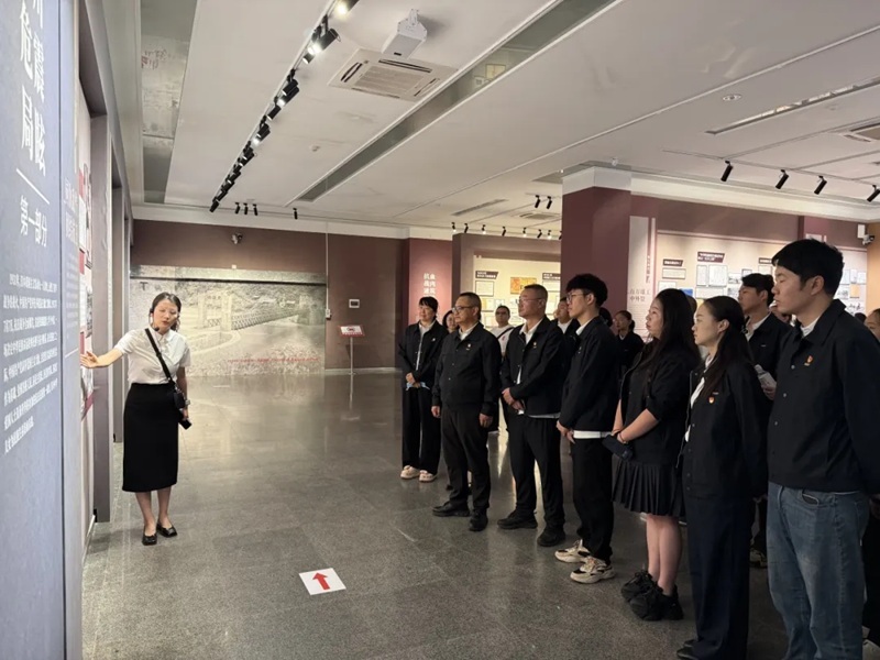 参观结束后,全体人员在党旗下合影留念,并结合集团企业文化展开讨论。大家感慨:“当年的筑路者以生命打通保家卫国通道,今天的建投人更要传承这份担当,在项目建设一线扛起责任。”