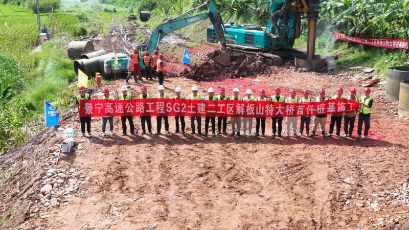 8月30日,景谷至宁洱高速公路项目解板山特大桥首件桩基开工。景宁高速项目是县域高速公路“能通全通”项目,路线起于景谷县城东芒缅村,止于宁洱县老师寨村,全长72.037公里,全线采用双向四车道高速公路标准,设计时速80千米/小时,桥隧比62.48%。解板山特大桥路线横跨课里河南岸坡脚及波状起伏坡面及冲沟出口地带而建设,大桥左幅长1608米,右幅长1598米,设计桥面宽25.5米。