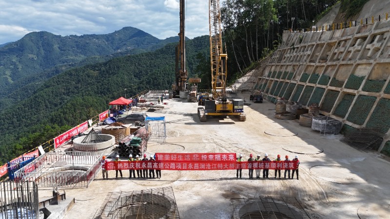 8月30日,永平至昌宁高速公路项目永昌澜沧江特大桥主塔首棵桩基顺利浇筑,项目建设进入提速阶段。永昌澜沧江特大桥为跨越澜沧江而设,是项目控制性工程之一,全桥长1928米,主桥为1416米单跨吊钢桁梁悬索桥,本次所浇筑桩基为永昌澜沧江特大桥昌宁岸主塔桩基,直径3.2米,桩基长度65米,采用旋挖钻分四级成孔。