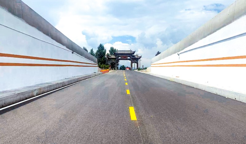 玉峰路改路位于丽江市区通往白沙古镇的主干道上,设计长度为730米,道路等级为二级公路,路基全宽12米,满铺沥青路面。其中,暗埋段长41.03米,敞开段长173.484米,其余段落为改路工程。通道设计为双向两车道,设计时速40公里/小时。