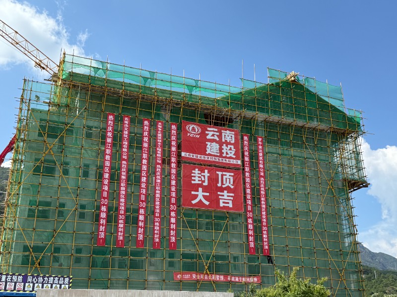 7月16日,随着最后一方混凝土在30#楼顶精准浇筑到位,由丽江公司承建的丽江职教园区EPC工程首栋主体结构顺利封顶。