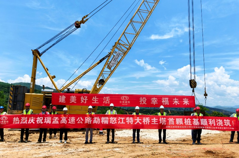 7月12日,瑞丽至孟连高速公路项目勐糯怒江特大桥孟连岸主塔首颗桩基浇筑完成。