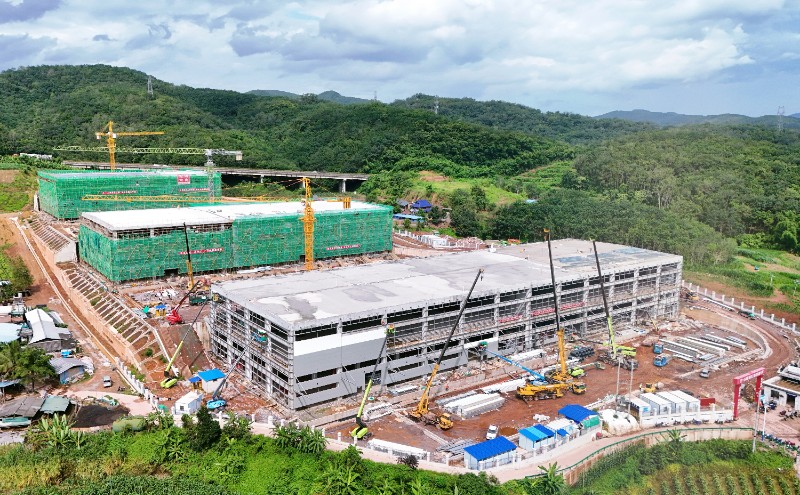 7月9日上午,随着最后一方混凝土浇筑完毕,西双版纳天然橡胶绿色智能物流综合园建设项目主体结构全面封顶。