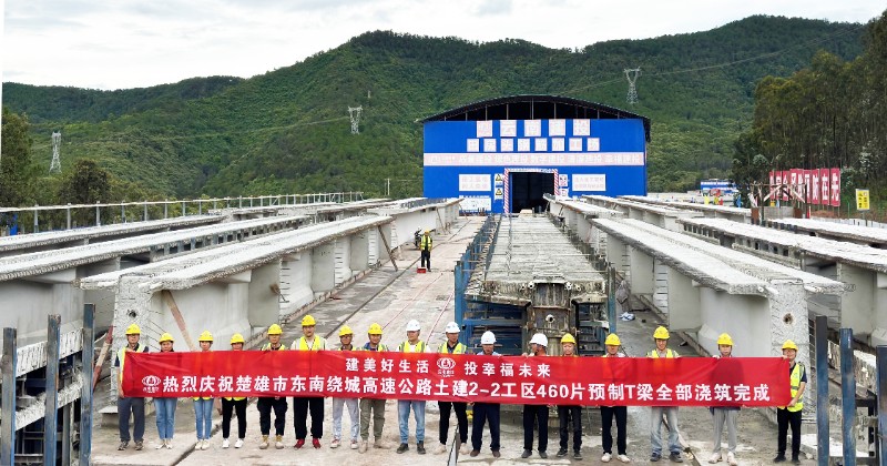 7月7日,楚雄东南绕城高速公路项目2-2工区AK0+579 A匝道桥14-11#预制T梁顺利浇筑完成,至此,土建2-2工区共计460片T梁预制任务完美收官。