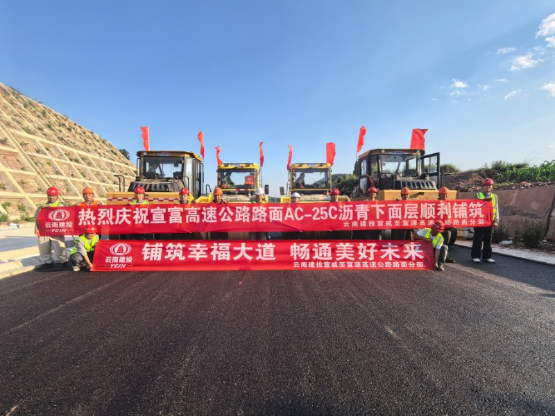 6月13日,宣富高速AC-25C沥青混凝土下面层试验段顺利铺筑,标志着项目路面施工迈入新阶段。