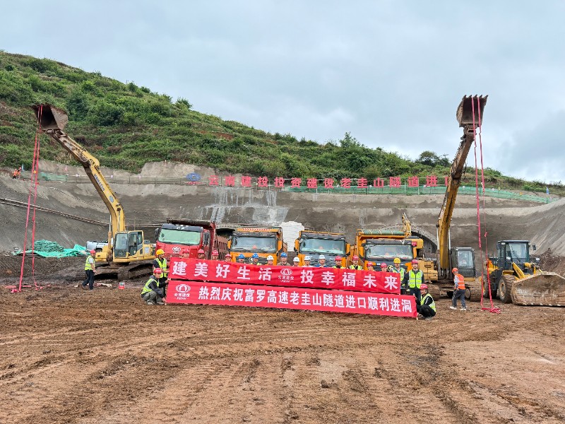 5月10日,富源至罗平高速公路老圭山隧道右幅进口端进洞施工。