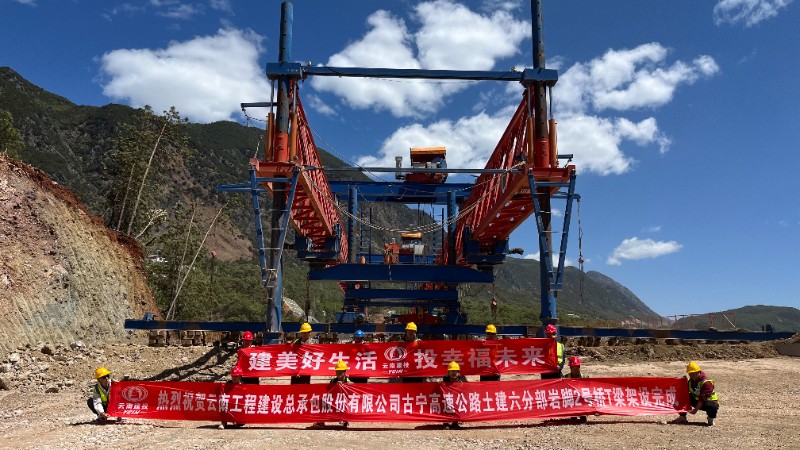 4月21日,总承包公司古宁高速土建六分部岩脚2号桥T梁架设圆满完成。
