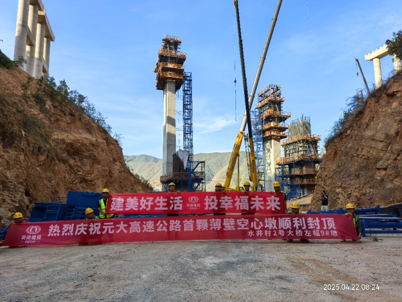 4月22日,元大高速项目水井村2号大桥左幅9#空心薄壁墩墩身顺利封顶,这是全线首个完成封顶的空心薄壁高墩。4月21日,元大高速勐令沟1#大桥首颗桩基顺利浇筑。4月20日,元大高速黎园冲2号大桥首颗桩基顺利完成浇筑,标志着该桥进入桩基施工阶段。
