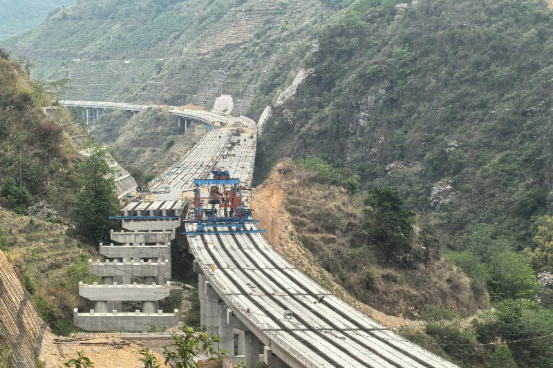 3月29日,元绿高速阿德1号大桥右幅T梁架设完成。3月30日,元绿高速嗝迷3号桥左幅T梁架设完成。