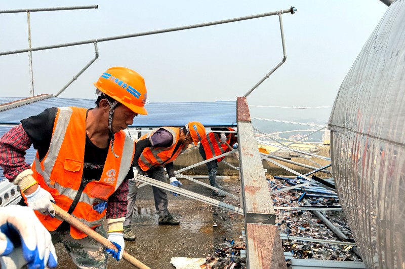 灾情发生后,瑞丽国际文体中心建设项目指挥部立即启动应急预案,第一时间与瑞丽市人民政府取得联系,根据灾情需要,组织安全、技术人员赶赴现场配合开展勘察、编制灾后应急处置方案等工作。同时,指挥部紧急抽调30余名管理人员及工人组成除险救援突击队,配合政府相关部门清理大楼破损附着物,确保周边群众生命财产安全。