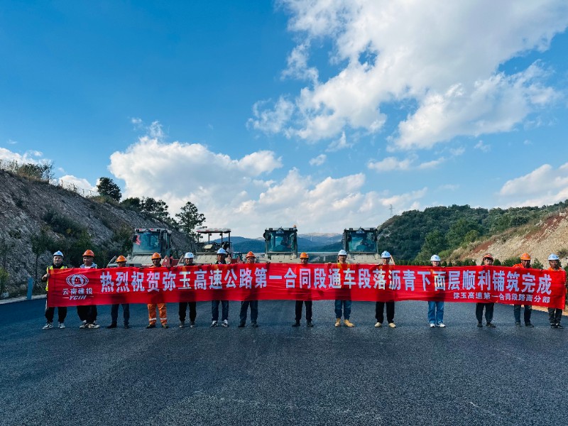 弥玉高速路面工程圆满完成通车范围内主线沥青下面层铺筑