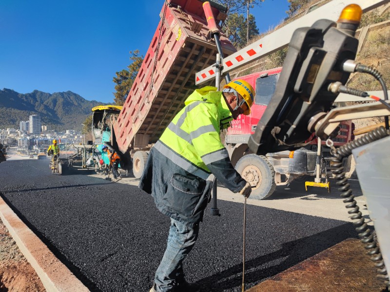 为高效推进项目建设,项目公司精心部署,层层压实各参建单位职责,严格控制沥青混合料拌合、运输、摊铺、碾压、检测等各个环节,逐项跟踪检测,确保沥青面层铺设衔接有序、一次成型、质量达标,为兰坪连接线建设如期完成打下坚实基础。