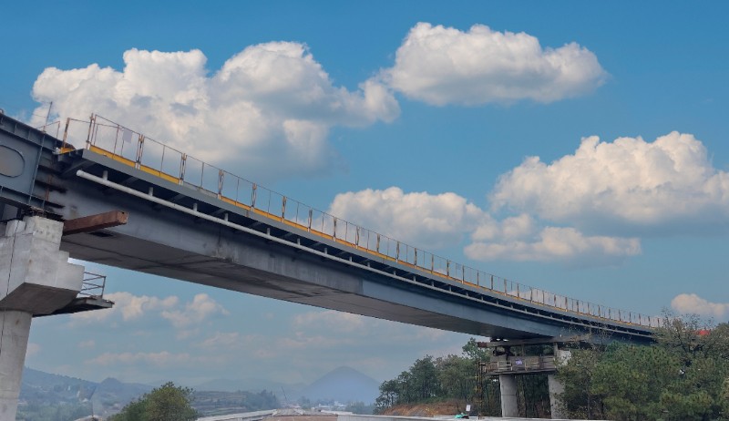 出水洞河大桥下部结构施工完成,团田坡1号大桥T梁顺利架通,平地海子2号大桥T梁顺利架设完成,炎方互通B匝道钢箱梁顺利顶推到位。