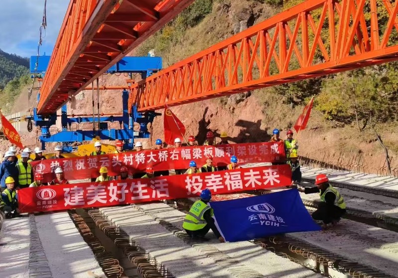 近日,云兰高速项目建设喜报频传,云兰高速丰胜特大桥右幅T梁架设完成,下坪箐大桥右幅梁板架设完成,云头村特大桥右幅梁板架设完成。