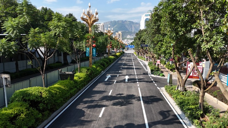 古铜路道路全长1075.46米,设计为四车道+人行道+单体树池+局部地方绿化带,道路总宽21-24米。修复改造前,路面局部有空鼓、开裂等情况,经过修复改造后,沥青路面变得光亮平整、交通标线变得简洁明了,有效改善了道路交通状况,使得城市更加干净整洁。