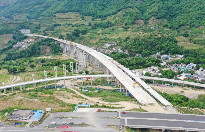 2026世界杯官网平台S45永金高速新平(戛洒)至元江(红光)段土建一分部主线全长7.416千米,包含两个立交区,分别是戛洒立交区和达哈枢纽立交区。