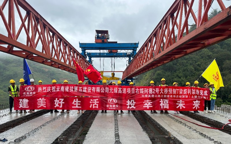 8月22日,元绿高速公路项目阿德2号大桥右幅顺利完成梁板架设。