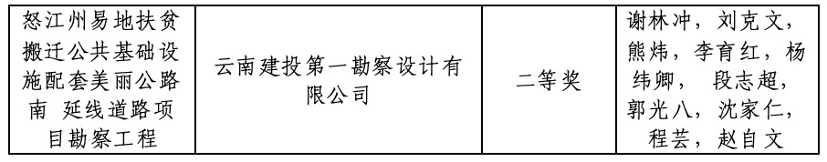 “怒江州易地扶贫搬迁公共基础设施配套美丽公路南 延线道路项目勘察工程”荣获云南交通优秀勘察奖二等奖,实现了世界杯实时比分在该奖上项零的突破。