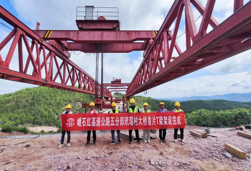 为确保首片T型梁精准架设,总包项目经理部多次优化施工组织,全面梳理施工要点,科学组织,从设备的发运、组装、试运行等方面精准把控施工细节,为T梁的顺利架设奠定了坚实基础。