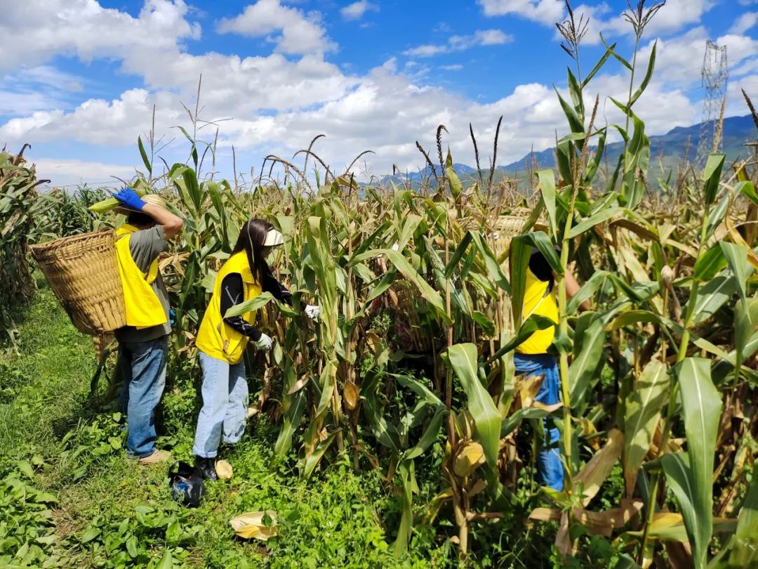 驻村队员帮助村民采收玉米