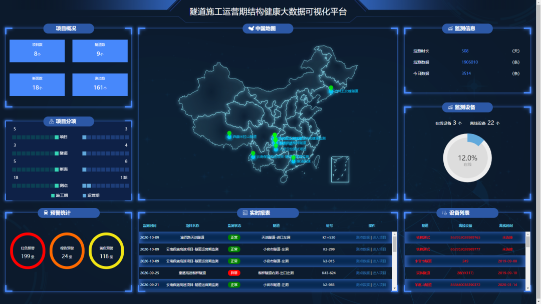 ▲隧道施工运营期结构安全监测预警系统