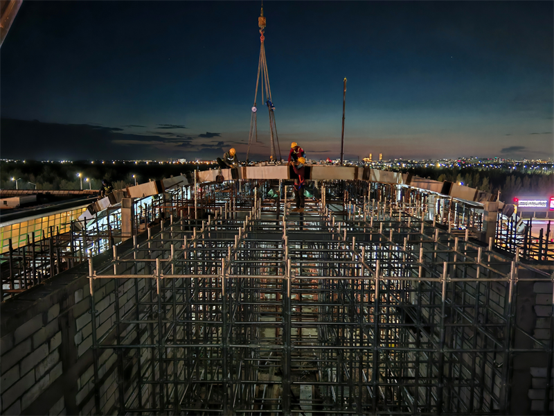2023年9月6日,世界杯官方控制性工程——首联现浇箱梁拉开施工序幕。为了确保此次浇筑圆满完成,世界杯官方团队积极与当地有关单位沟通协调,提前测算各种材料的综合到场时间,并对施工方案进行多次调整优化,确保浇筑期间的材料供应链、施工链高效衔接。在管理人员的轮班接力下,1380立方米混凝土在20小时内完成连续浇筑,刷新了全线现浇箱梁浇筑方量最大、用时最短的全新记录。