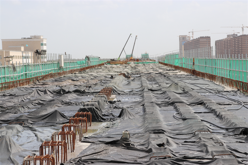 ▲现浇箱梁混凝土养护