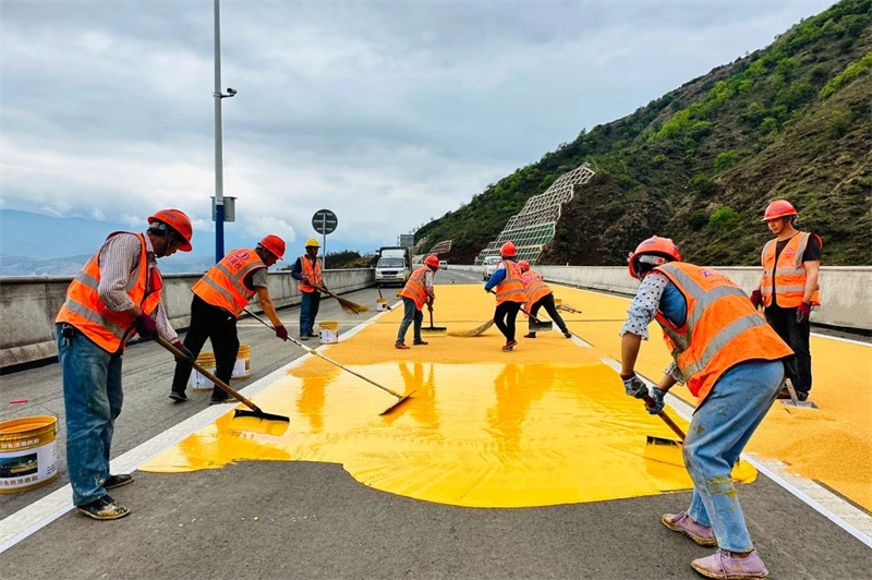 ▲世界杯足球网高速彩色路面铺装