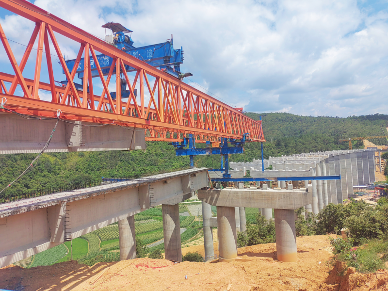 6月21日,峨石红高速公路(玉溪段)项目柏龙箐大桥首片预制T梁架设完成,拉开了该大桥上部结构施工序幕。