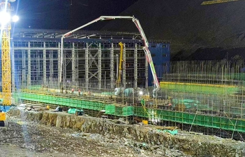 原矿堆场施工区域位于海拔5200多米处,夜间气温低至零下7摄氏度,近期降雨频繁。为保障此次混凝土的顺利浇筑,项目部提前统筹,分析研判浇筑过程中可能遇到的问题,精心制定详细的浇筑计划和应对措施,积极对接业主方和混凝土搅拌站,合理安排值班人员,在混凝土供应、安全措施、后勤保障、防寒防冻防雨等方面做好充分准备。最终,经过10余小时的连续艰苦奋战,圆满完成了原矿堆场4#通廊首层混凝土浇筑任务,浇筑方量为518立方米。
