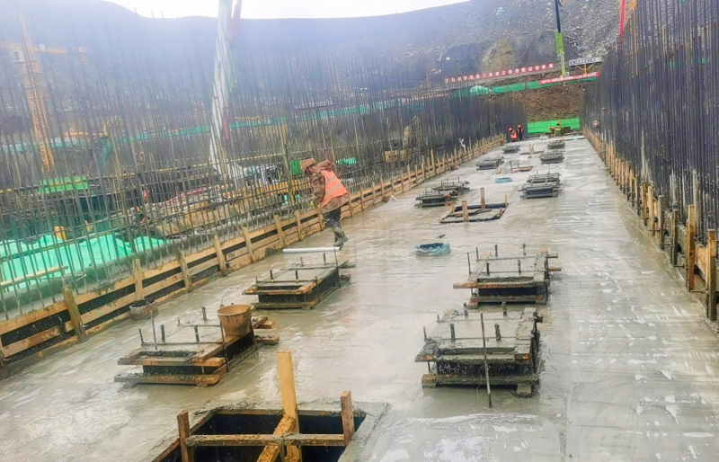 西藏巨龙铜矿二期改扩建项目建筑占地面积约2.47万平方米,建筑高度38.3米,建筑类型上部为钢框架结构,下部为双层箱涵结构,±0.00以下建筑高度为8.5米。截至目前,4#通廊施工至-4.8米,6#通廊筏板施工完成85%,土方开挖完成95%。