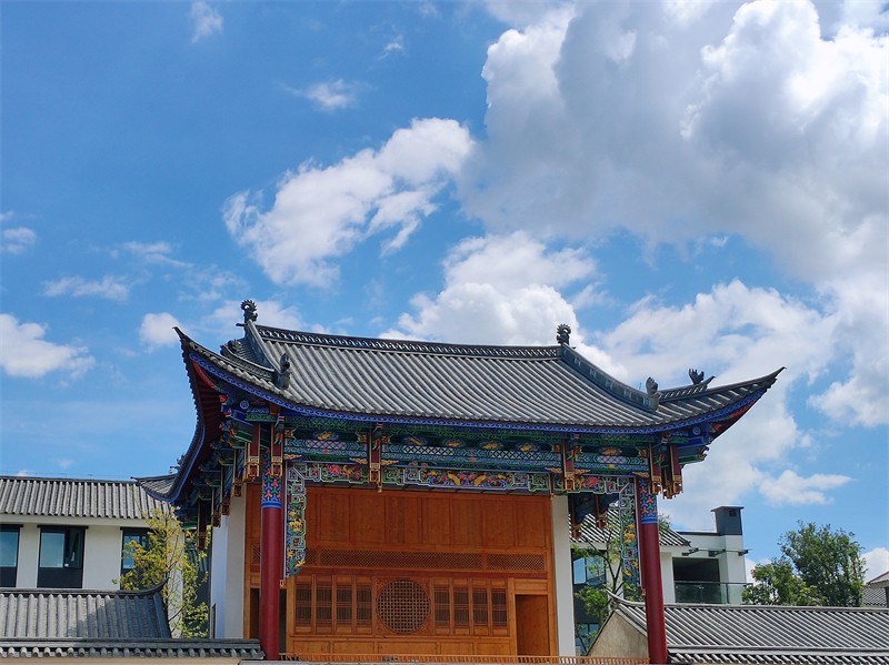 世界杯足球比分充分吸收白族传统建筑合院式、组团化布局特点,注重使用门楼、照壁、彩画、山花、青瓦白墙等民族元素,配套建设戏台、牌坊等白族村落中常见的公共设施,并配备完善小镇现代服务功能的客事中心、物业中心、生鲜超市、幼儿园等,打造宜居宜业的新白族民居群。