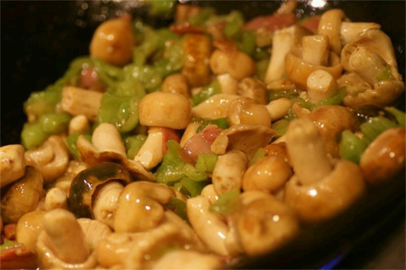 青头菌的做法有很多种,蒸、烤、煮、炒各有特色,大多数昆明老百姓还是喜欢烩青头菌,用猪油加入腌五花肉、大蒜炒香,放入青头菌翻炒2分钟,加入少量清水焖4-5分钟,再加入适量的食盐和青椒翻炒,使菌味充分融入汤汁,一盘鲜香浓郁的烩青头菌就大功告成了。