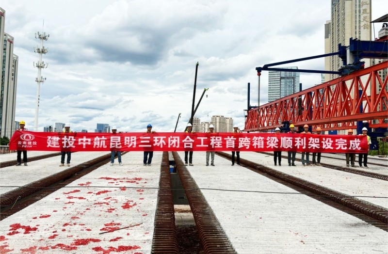 5月27日,昆明市三环闭合工程东三环A段项目昌宏西路主线桥首跨箱梁顺利架设完成,拉开了全线桥梁上部结构施工序幕。