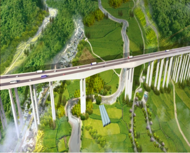 作为土建十二分部三大控制性工程之一的九龙大桥位于罗平县九龙街道,为跨越牛街河和S205省道而设。本桥左幅桥长812.08米,右幅桥长771.58米,为预应力混凝土连续 T 形梁/变截面预应力箱形梁桥;主墩为双肢薄壁空心墩,墩高75米,为全线最高墩;桩基数量共计136颗(左幅71颗、右幅65颗),桩基设计类型为嵌岩桩。