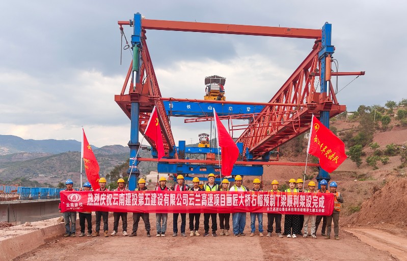 5月6日下午,随着最后一片T梁精准地落在支座上,云兰高速公路土建五分部顺利完成画匠大桥右幅预制T梁架设工作。至此,画匠大桥T梁全部架设完成,项目施工进入新的攻坚阶段。