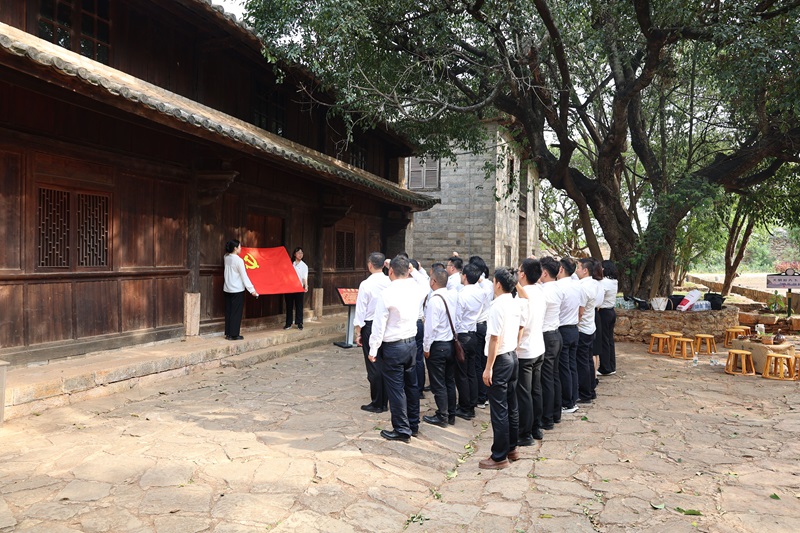 随后,全体党员到蒙自市碧色寨红色基地参观了解滇越铁路历史,在沉浸式研学体验中感受红色精神,在红色传承中汲取智慧与力量。参观结束后,一行人员在碧色寨院坝内开展党纪学习教育,并就党纪学习教育展开心得交流。