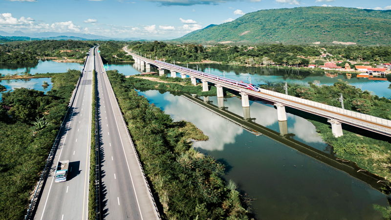 老挝首都万象至磨丁口岸高速公路首都万象至万荣段,是老挝第一条高速公路。项目概算总投89.2亿元,线路全长111.004Km,设计为双向四车道,设计速度为80-100公里/小时,建设期3年,运营期50年。项目2018年12月30日正式开工,2020年12月20日提前13个月建成通车,2023年1月9日项目通过竣工验收。