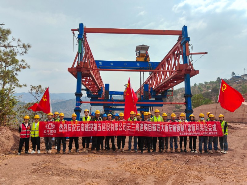4月28日中午12点,云兰高速公路土建五分部顺利完成画匠大桥左幅预制T梁架设。