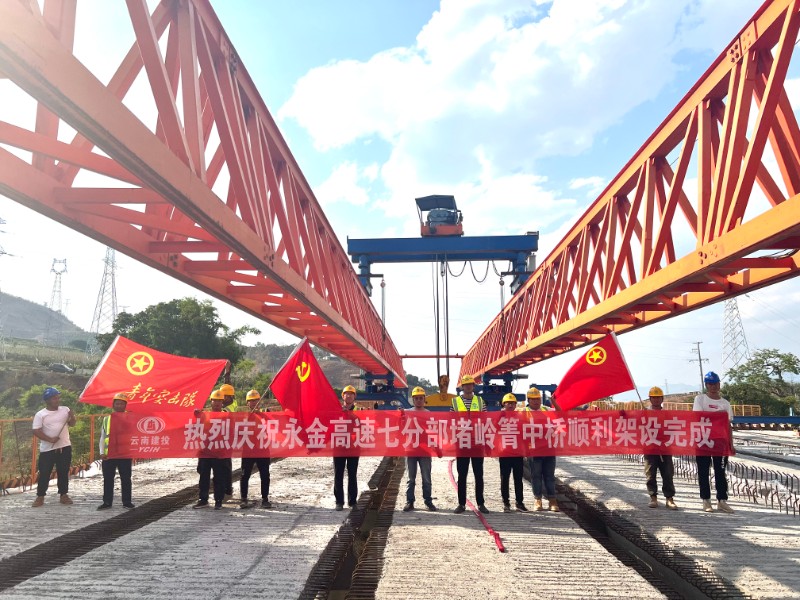4月25日,永金高速(戛元段)七分部堵岭箐中桥顺利架设完成,为后续路面施工提供有利条件。