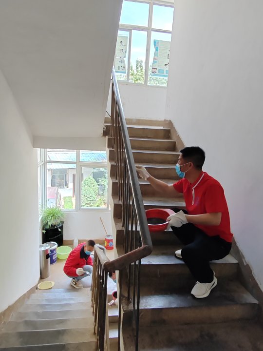4月19日,一勘司所属勘察研究院8名科研人员变身“粉刷匠”,对办公楼楼梯扶手进行了一次旧貌换新颜的粉刷。