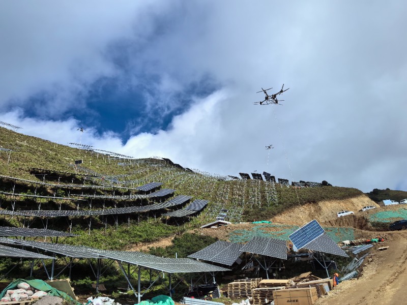 该项目为荒山披上光伏“铠甲”,实现土地资源的高效利用,实现生态效益、经济效益、社会效益多赢。项目地处海拔2000多米的“云巅之上”,自开工以来,面临地形地势复杂、坡陡沟深、交通不便、灌木丛生等困难,元江片区项目部科学组织调度,采用无人机、人背、马驮等措施和方式运输光伏板、混凝土等材料设备,成功克服了地形地貌带来的施工难题。在全体参建者的共同努力下,项目于2月6日凌晨02:08实现升压站一次性受电成功(主变5次冲击成功、站用变倒负荷成功、SVG投运成功、带负荷测试合格),37#、38#、40#、41#、42#、43#、44#、45#共8个方阵陆续并网成功。