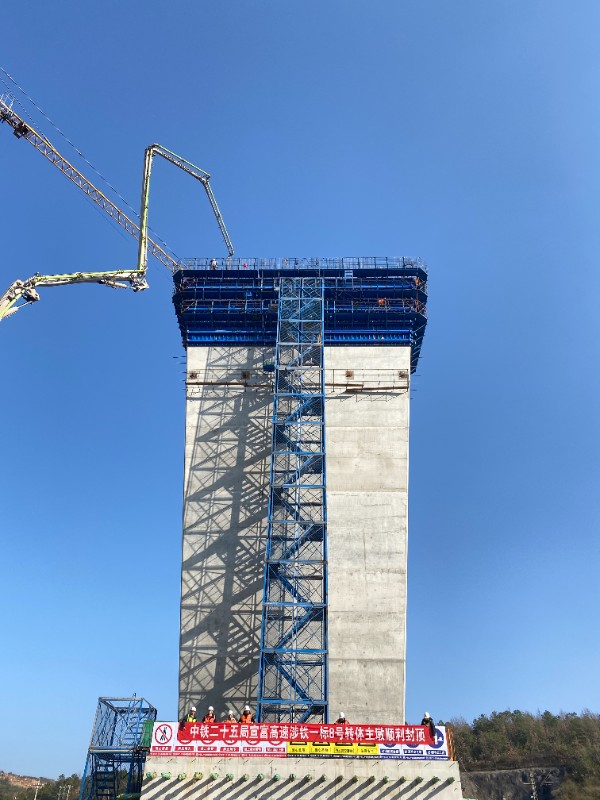 1月10日,宣富高速涉铁工程响水河2号大桥(上跨盘西铁路)转体桥8号主墩顺利封顶。该转体桥施工取得阶段性重要进展,正式由下部结构施工转为上部结构施工。