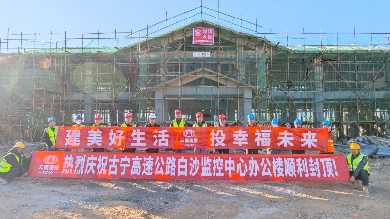 1月8日下午,由九公司承建的丽江古宁高速公路沿线服务设施项目白沙服务区监控中心办公楼顺利封顶。