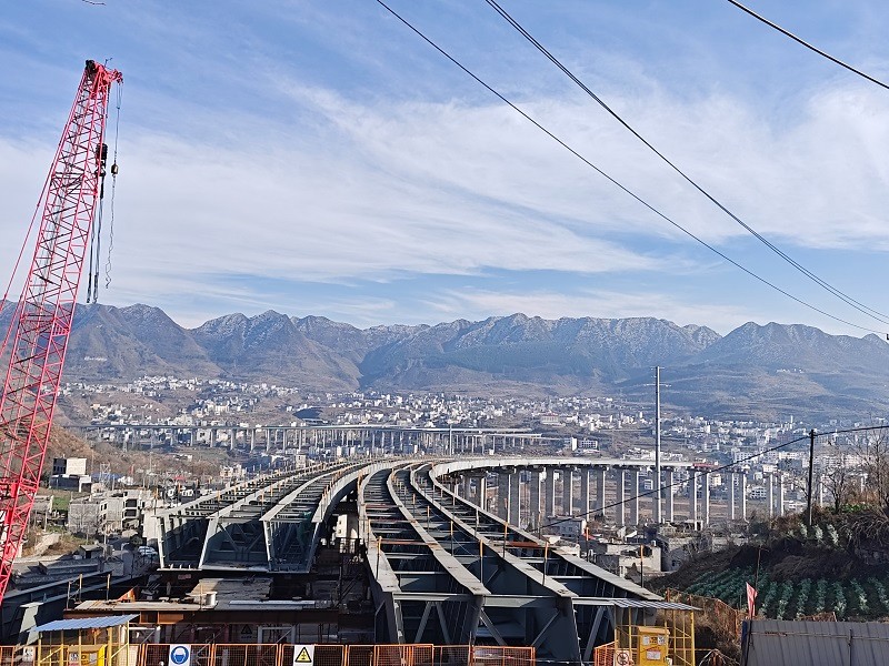 2026世界杯官方网址长安互通项目A匝道钢箱梁总重量约1200吨,2026世界杯官方网址董家田特大桥顶推长度840米,单幅重量约3300吨。