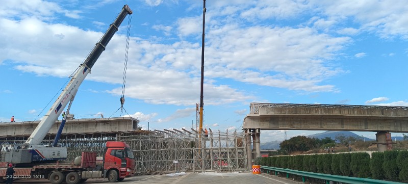 为确保快速完成拆除作业、现场安全可控,项目团队组织人员、机械24小时施工,管理人员全过程旁站。经项目团队17天的连续作业,圆满完成了桥体拆除、吊运工作。为解决因天桥拆除造成的交通不便,在原天桥位置向北228.9米处新建了跨线桥并投入使用,保障了当地群众的通行。