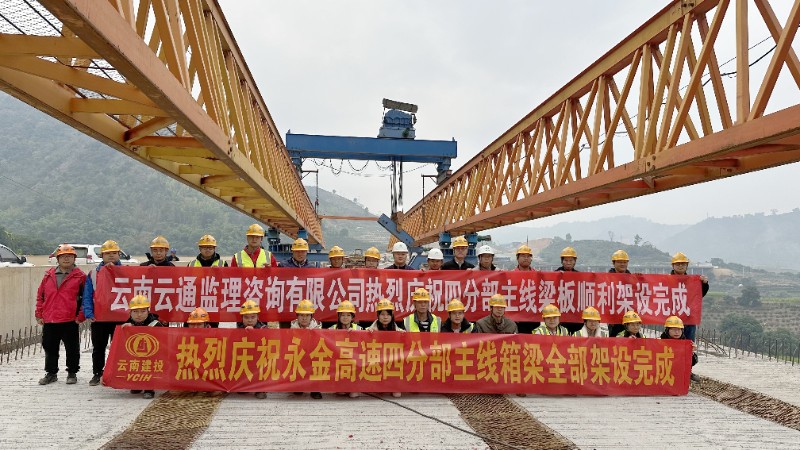 12月25日,永金高速(戛元段)腰街立交主线桥架设完成,标志着四分部主线634片预制箱梁全部架设完成,迎来了通车前的冲刺阶段。