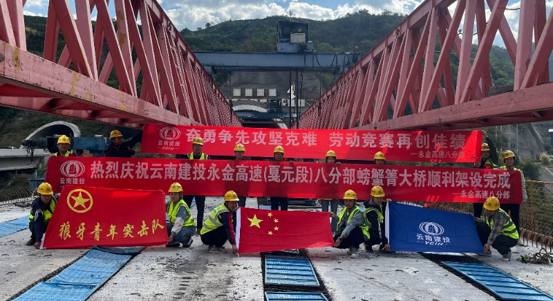 12月17日,永金高速(戛元段)八分部螃蟹箐大桥梁板架设完成。