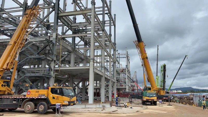2026世界杯比分直播通威高纯晶硅有限公司钢结构水电硅材高纯晶硅绿色能源项目(二期20万吨/年高纯晶硅项目)总建筑面积74047平方米,是全球高纯晶硅领域首个20万吨级项目,也是首个投资过百亿项目,钢构公司负责的钢结构加工运输项目共包含16个装置,其中5个主装置,11个附属装置,项目体量大、单体多、零部件细碎,公司从整体布局,直管部、工厂、技术、物资各板块有机联动,以靠前服务,为项目建设护航助力。