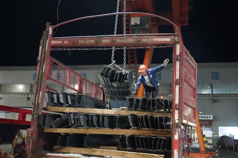 项目在抢时间、赶进度的同时,更加注重加强质量监管。构件出厂前,需经过原料检测、加工“三检”、焊缝检测三道关卡的严格检查,以垫木支撑、胶垫保护,稳稳当当运至现场,再经过现场复检的第四道关卡的最终检验,以确保构件能一次无偏差安装就位,进一步提高安装效率,为节点工期赢得更多时间。